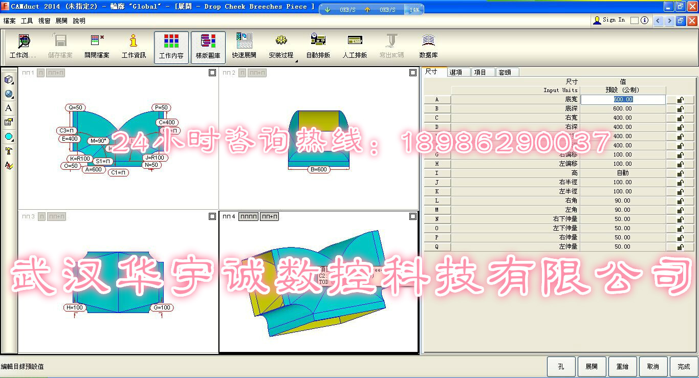 武漢華宇誠(chéng)數(shù)控科技有限公司經(jīng)過(guò)反復(fù)試驗(yàn),成功研制出了通風(fēng)管道專用數(shù)控等離子切割機(jī),配合專用的風(fēng)管切割軟件,自動(dòng)生成圖紙、導(dǎo)出加工程序。更加適應(yīng)風(fēng)管展開(kāi)切割需求,功能更適應(yīng)風(fēng)管展開(kāi)切割、操作更加便捷、成本進(jìn)一步降低,讓利于客戶。操作人員所需要做的就是在軟件中選擇所需要的風(fēng)管樣式,輸入所需要的尺寸,然后調(diào)出加工程序進(jìn)行切割就可以了。既方便快捷、又精確實(shí)用。