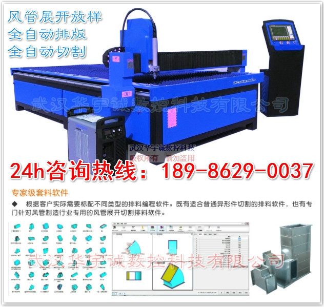 武漢華宇誠(chéng)數(shù)控生產(chǎn)的風(fēng)管展開(kāi)下料設(shè)備已在北京中央空調(diào)及通風(fēng)系統(tǒng)制造企業(yè)大規(guī)模使用。在河北省的衡水、石家莊、廊坊以及四川成都、重慶、天津、江蘇常熟、泰州、靖江、蘇州、南京、常州、浙江杭州、山東濟(jì)南、廣東深圳、東莞、佛山、陜西西安、北京通州、海南海口、三亞、內(nèi)蒙古等地,都有使用武漢華宇誠(chéng)所生產(chǎn)的全自動(dòng)風(fēng)管等離子切割機(jī)企業(yè)。歡迎廣大風(fēng)管加工制作企業(yè)前來(lái)參觀、考察,選購(gòu)風(fēng)管專用等離子切割機(jī)。 適合材料有:不銹鋼板、碳鋼板、鋁板、銅板、鍍鋅板、白鐵皮、合金板等多種板材材料,一應(yīng)俱全!高速等離子切割,切割效果為激光下限!